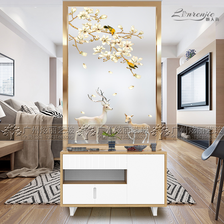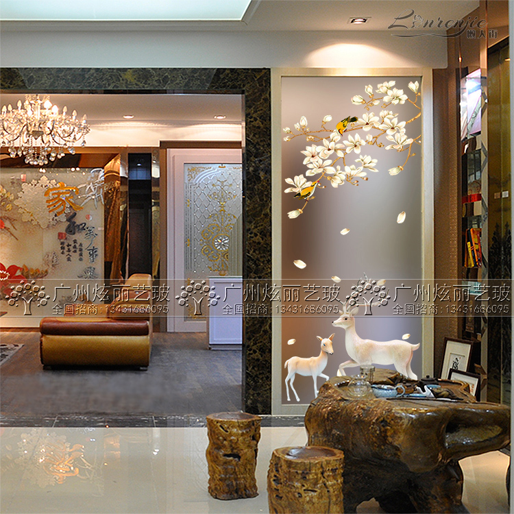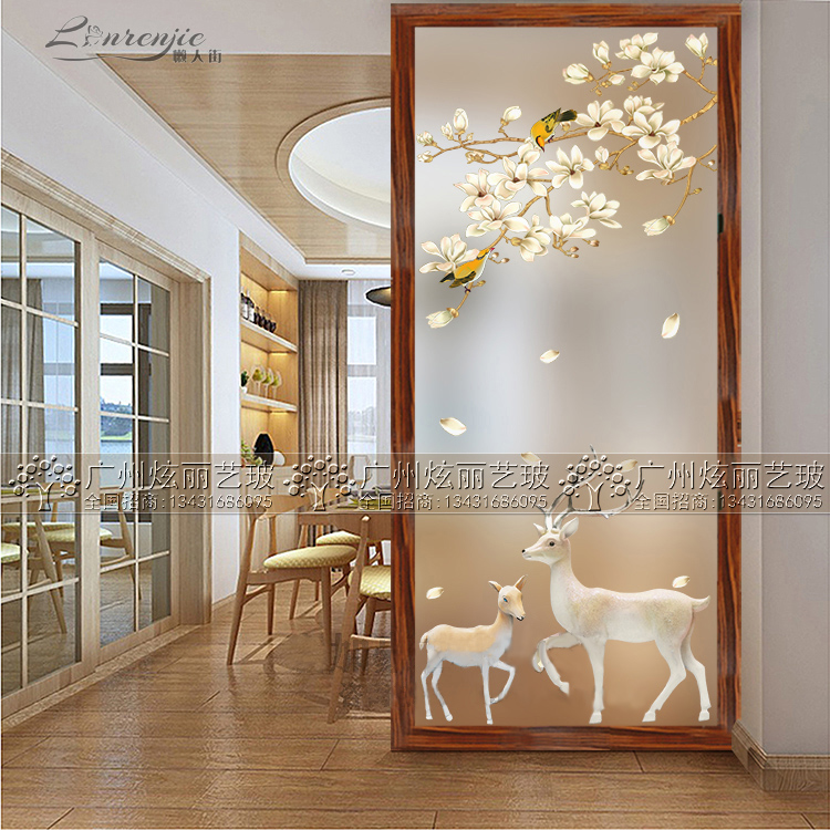 Art glass entry partition 3d three-dimensional living room screen porch aisle bath room double-sided frosted light-transmitting elk