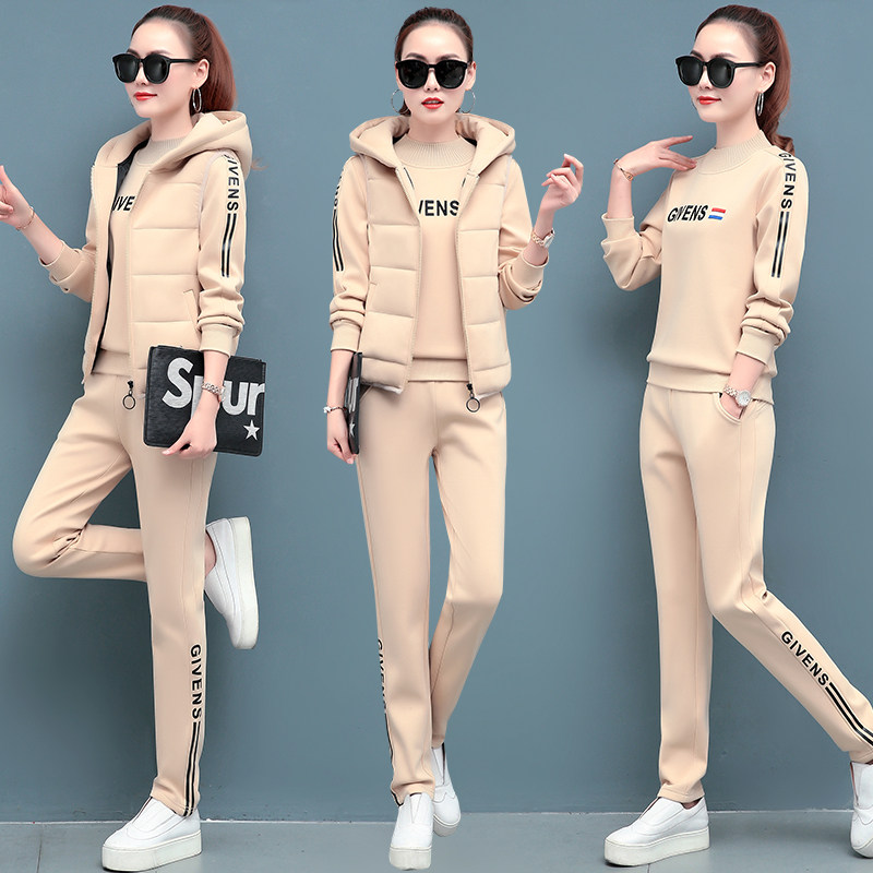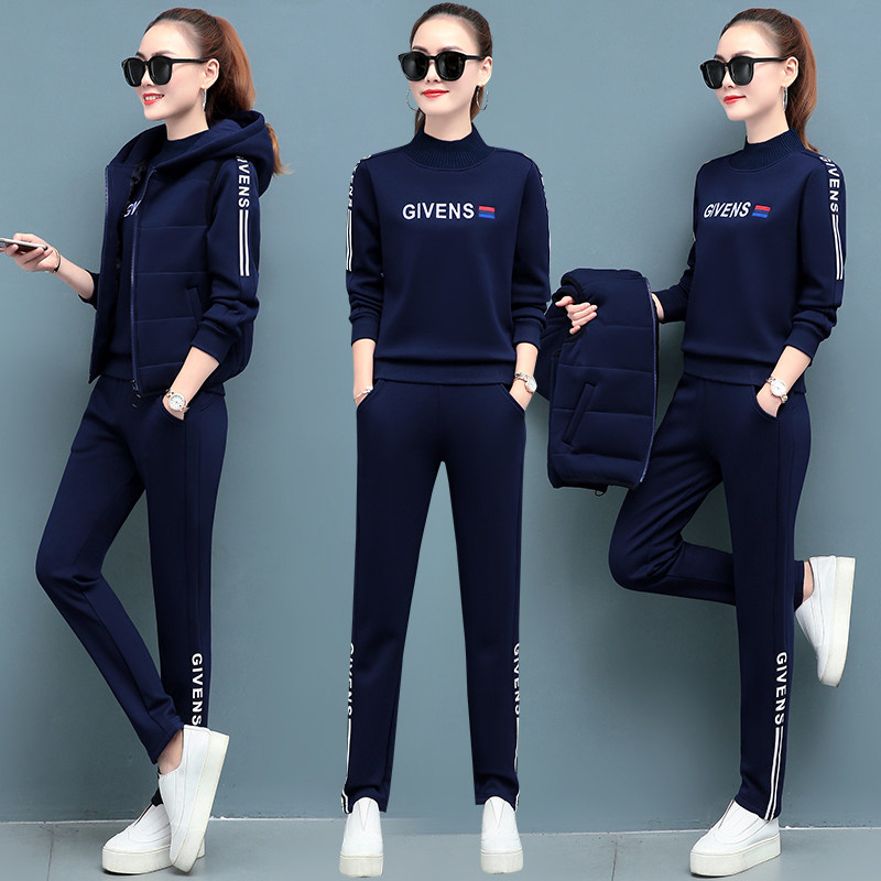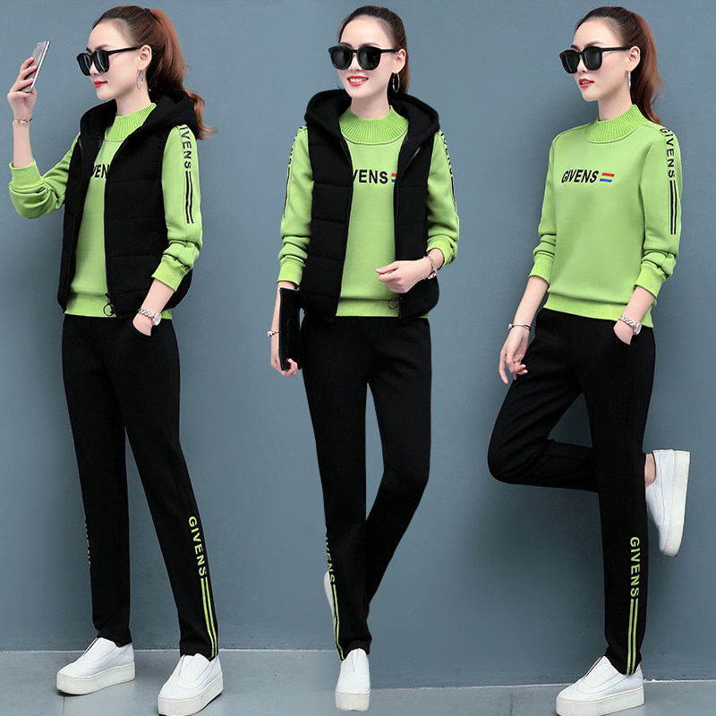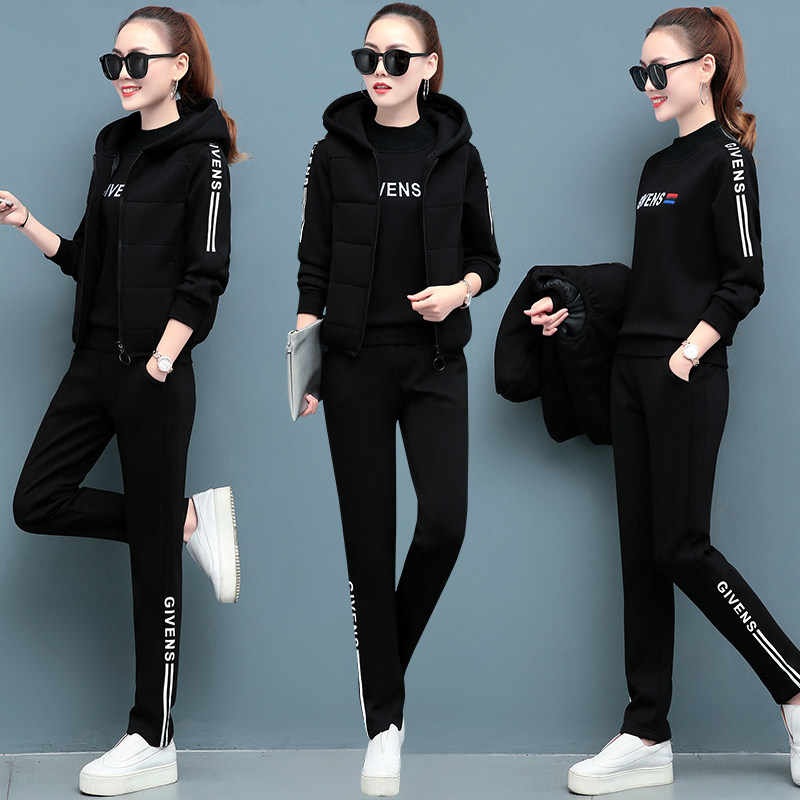 Plus Fleece Thickened Sports Suit Women Winter New Korean Version Fashion Loose Autumn Winter Casual Thick Cotton Dress Three Sets