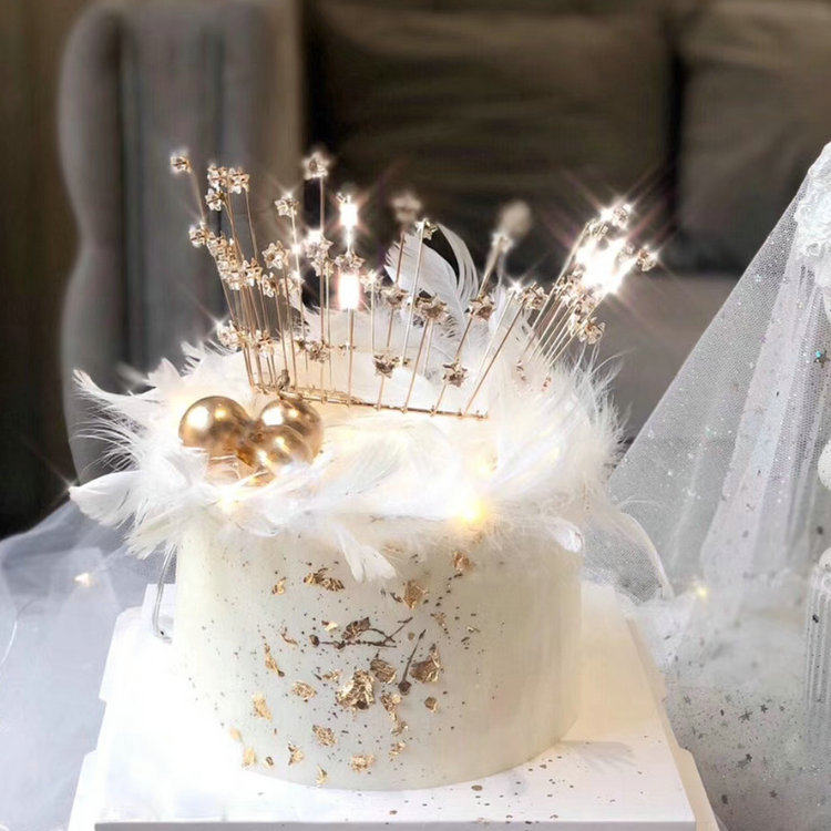 Cake decorated with stars crown pieces of ostrich feather private baking plugins net red cake decoration