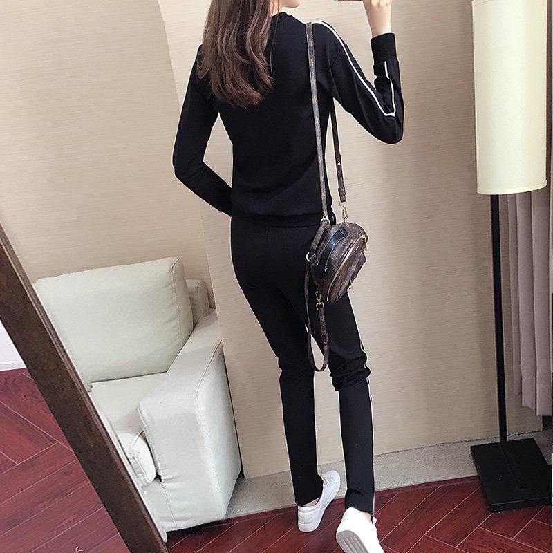 Casual sports suit women's spring and autumn 2022 new fashion Korean version loose and thin long-sleeved embroidered sweater two-piece