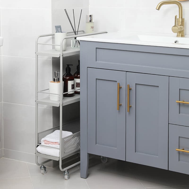 Na Valley Small Cart Ultra Narrow Triple Shelf Nordic Ins Removable Clip Slit Kitchen Bathroom Bedside Containing Deck Shelf
