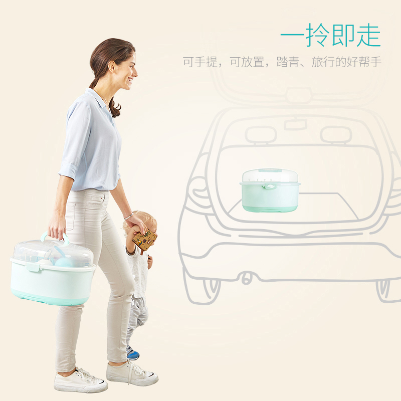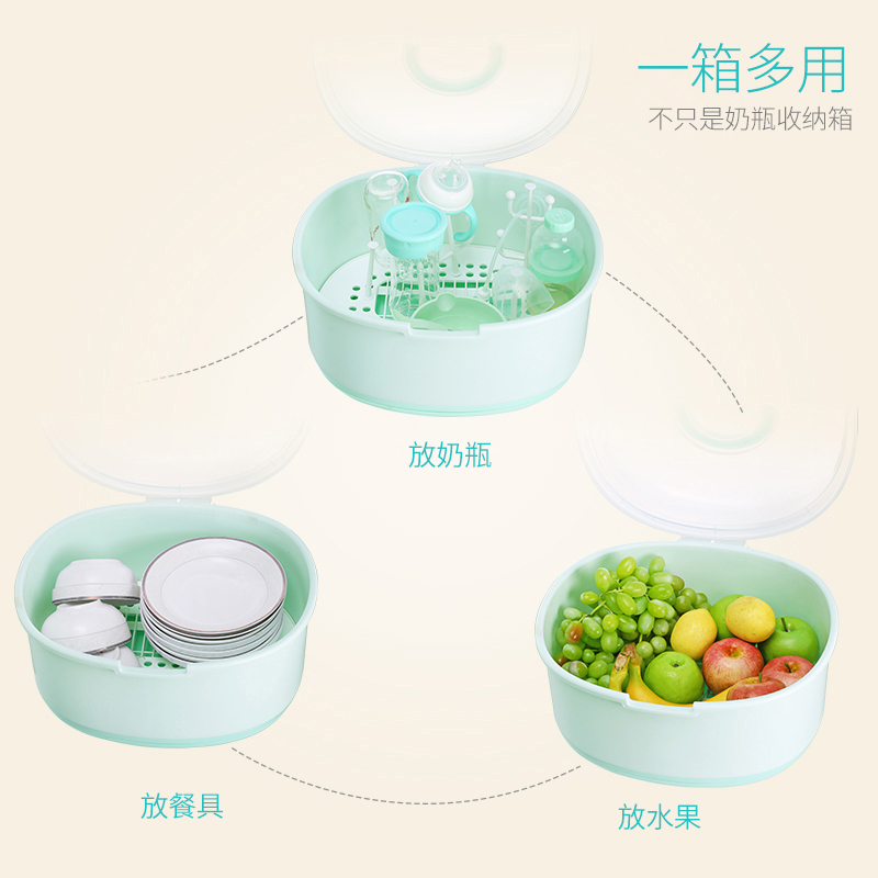 Baby bottle storage box with lid dustproof drying drain shelf Baby tableware Portable storage storage box