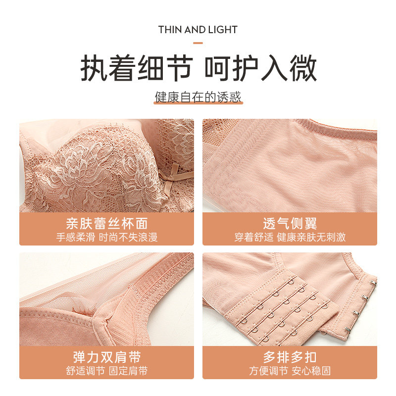 Love Dai big chest show small beauty back bra summer full cup gathered women's sub-breast bra underwear women's thin large size