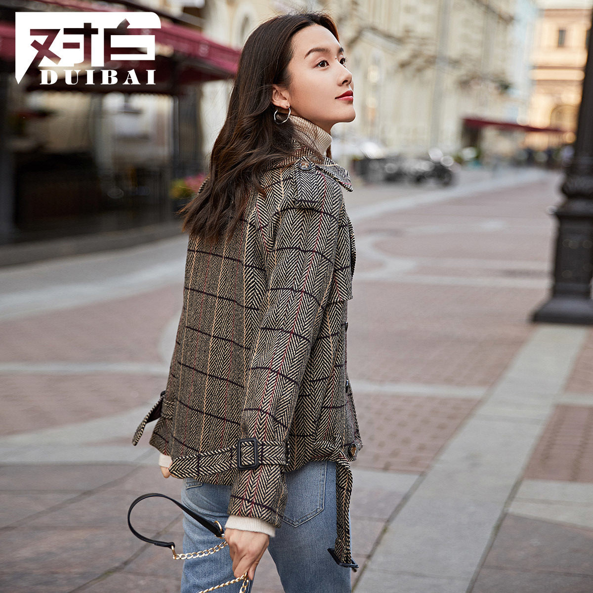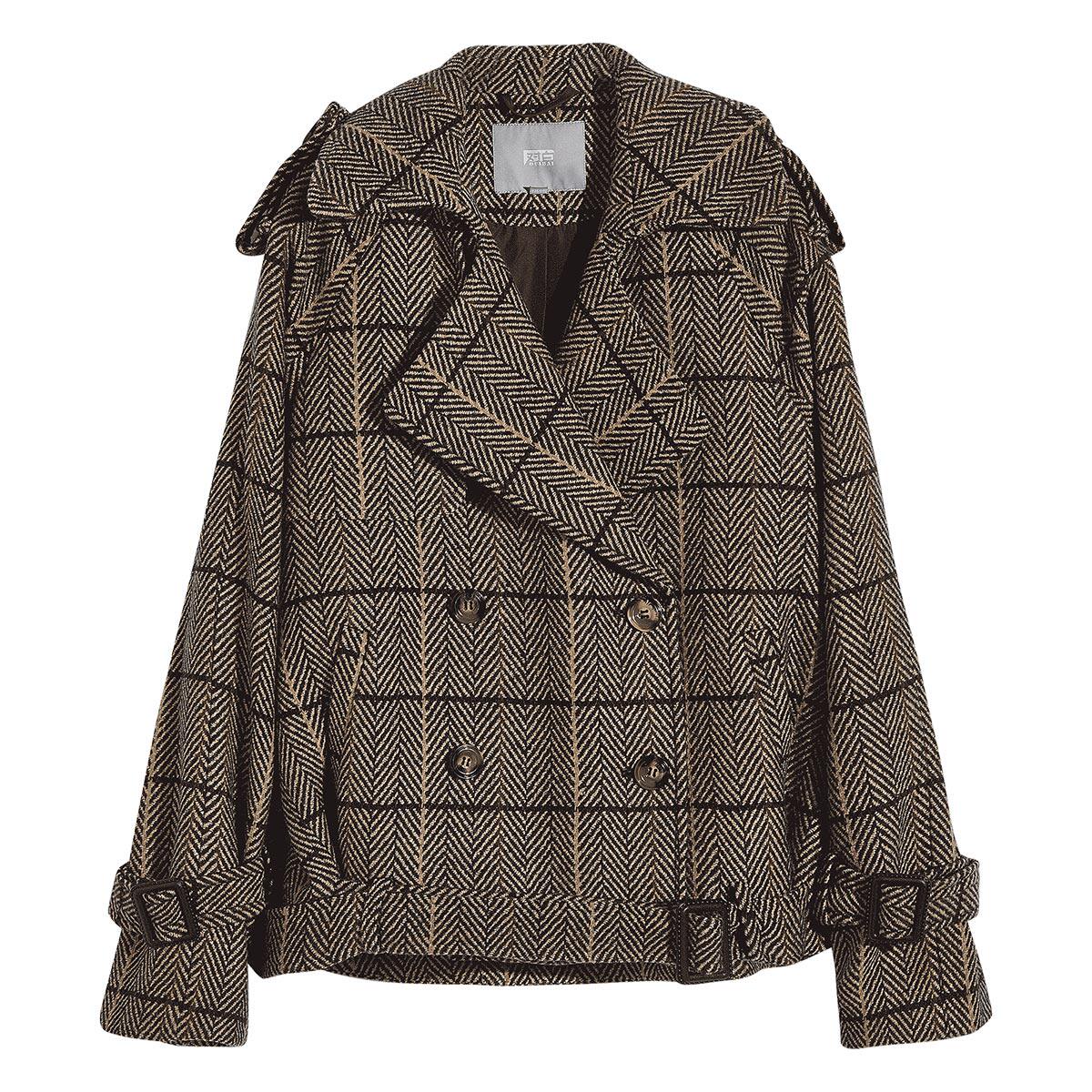 For white retro plaid short fur coats women small sub-winter-style double-row buttoned with bigcoat
