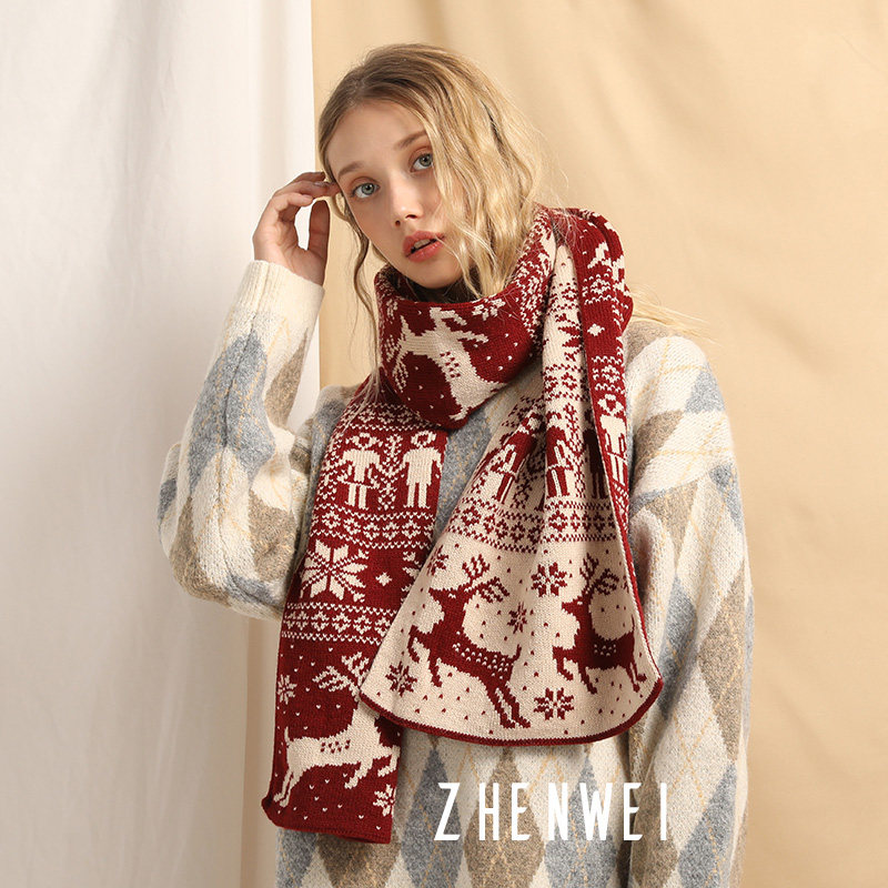 Scarf woman Winter Christmas scarf gift box elk red Christmas gift men 100 hitch lovers surround the Christmas wines
