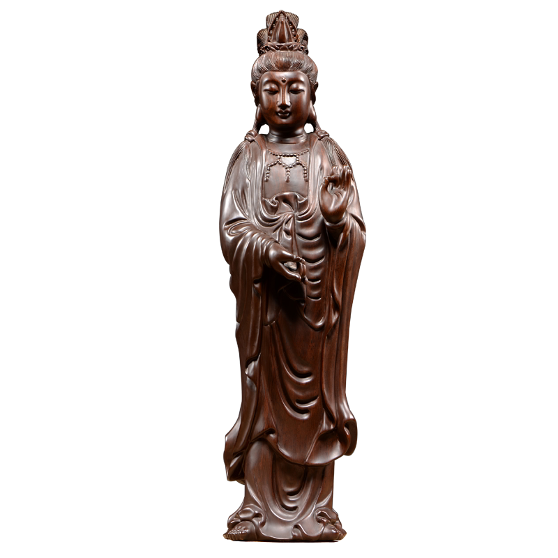 The Cub Workshop Black Sandalwood Carvings of the Soundtrack Bodhisattva REAL WOOD ENGRAVING LIVING ROOM HOME HOME Worship Buddha Craftsmanship Gift Pendulum