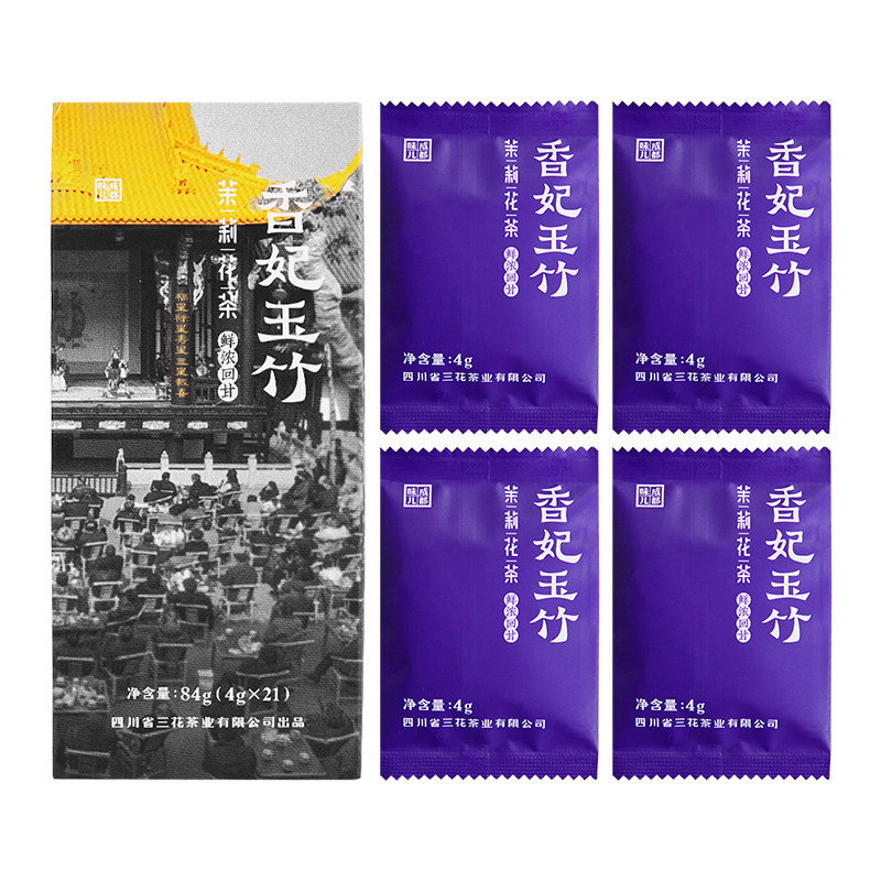 Three flowers tea fragrant courtesone jade bamboo 84g boxed jasmine tea 4g * 21 bag small bagged new tea