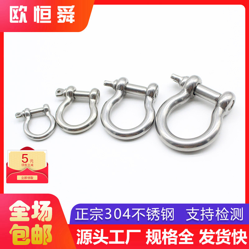 304 stainless steel arched shackle bow type horseshoe shaped hoisting tool lifting ear marine heavy chain connection