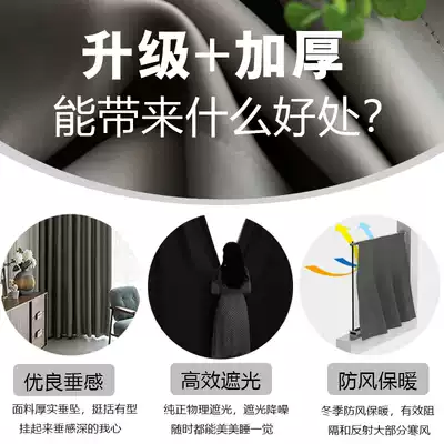 Curtain full shading cloth Nordic simple adhesive hook floating window insulation sunscreen thickened new bedroom living room balcony