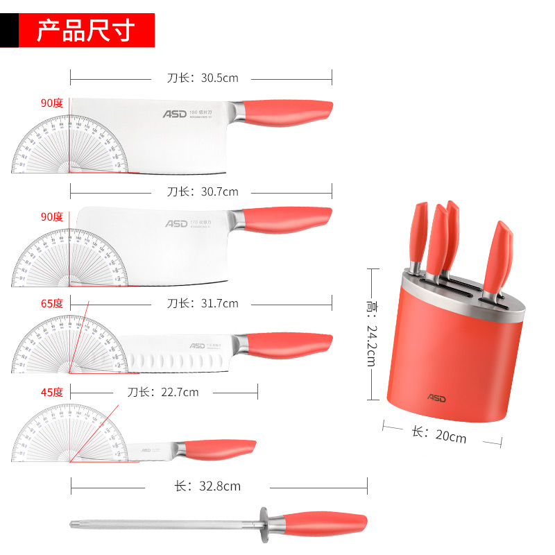 Love Shida full range of kitchen knives six sets of sharp and durable domestic stainless steel cover knife kitchen knife sliced water fruit knife