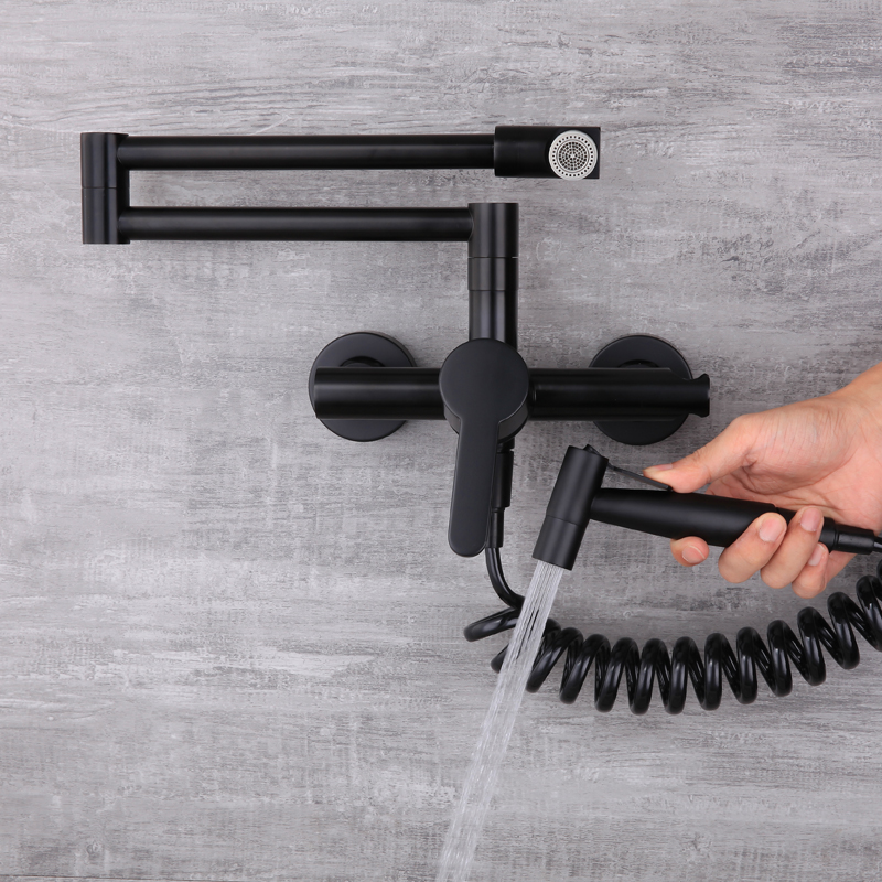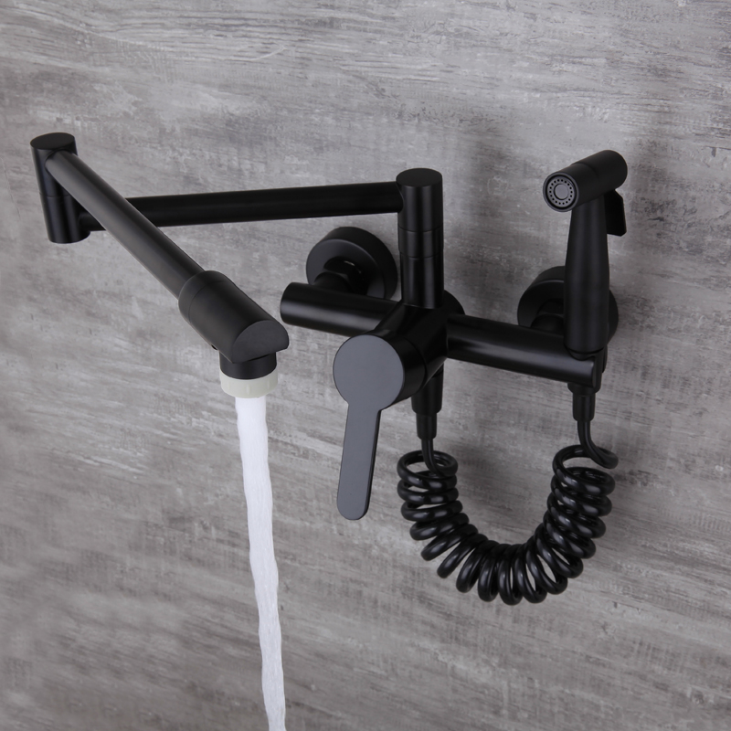 Black into wall kitchen faucet cold and hot wash basin washing pool brass folding stretched and rotate universal spray gun