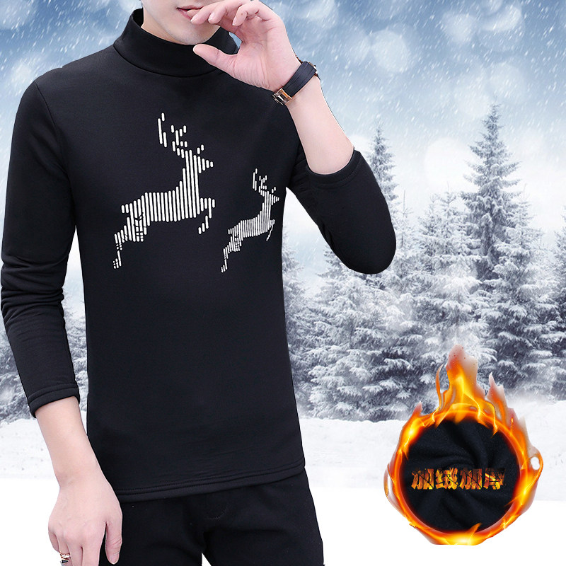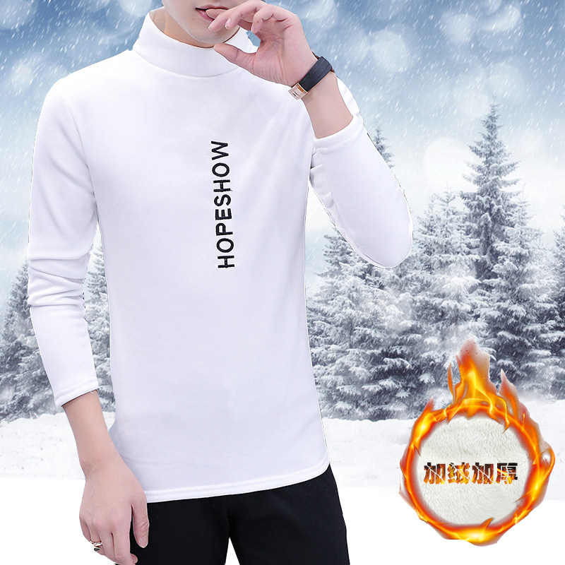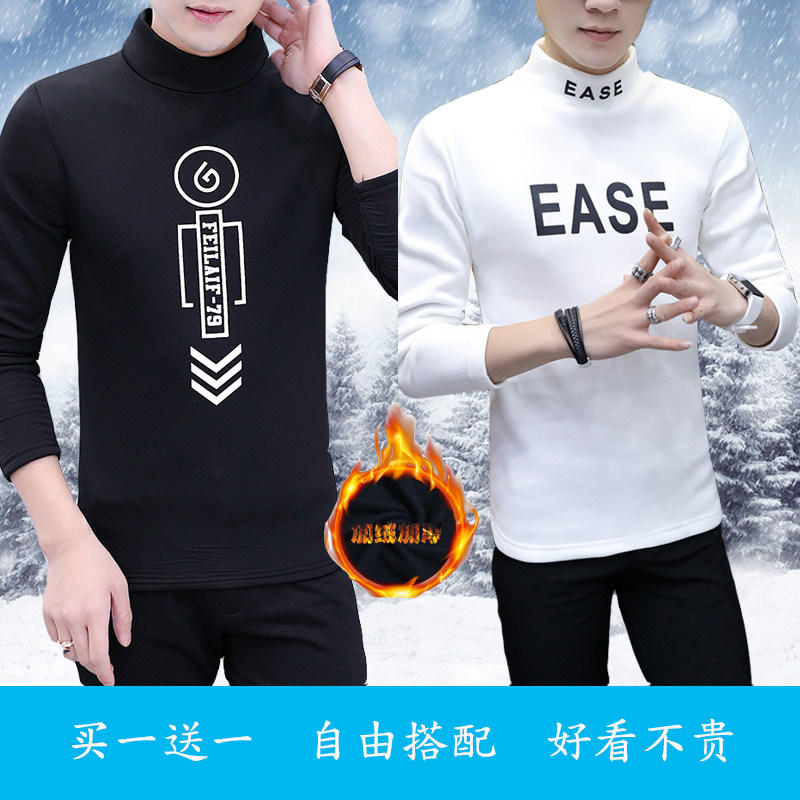 2-pack of teenagers Korean version of the trend of self-cultivation in winter plus velvet warm bottoming shirt sweater long-sleeved half turtleneck T-shirt