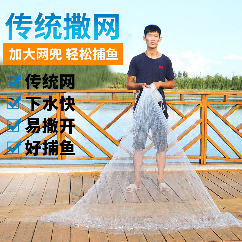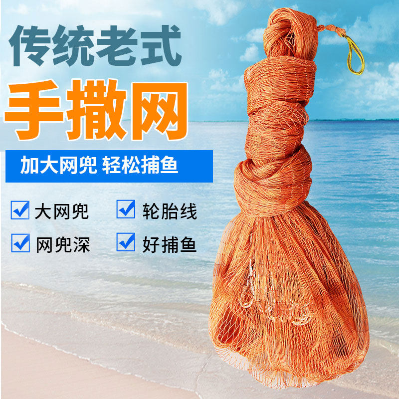 Old-fashioned traditional hand throwing net fishing net fishing net fishing throwing net throwing easy throwing spinning net catch automatic fishing net