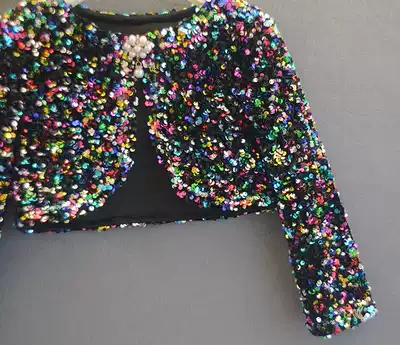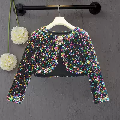 Children's black shawl long-sleeved girl princess cloak catwalk dress girls perform shiny pieces outside the cloak autumn
