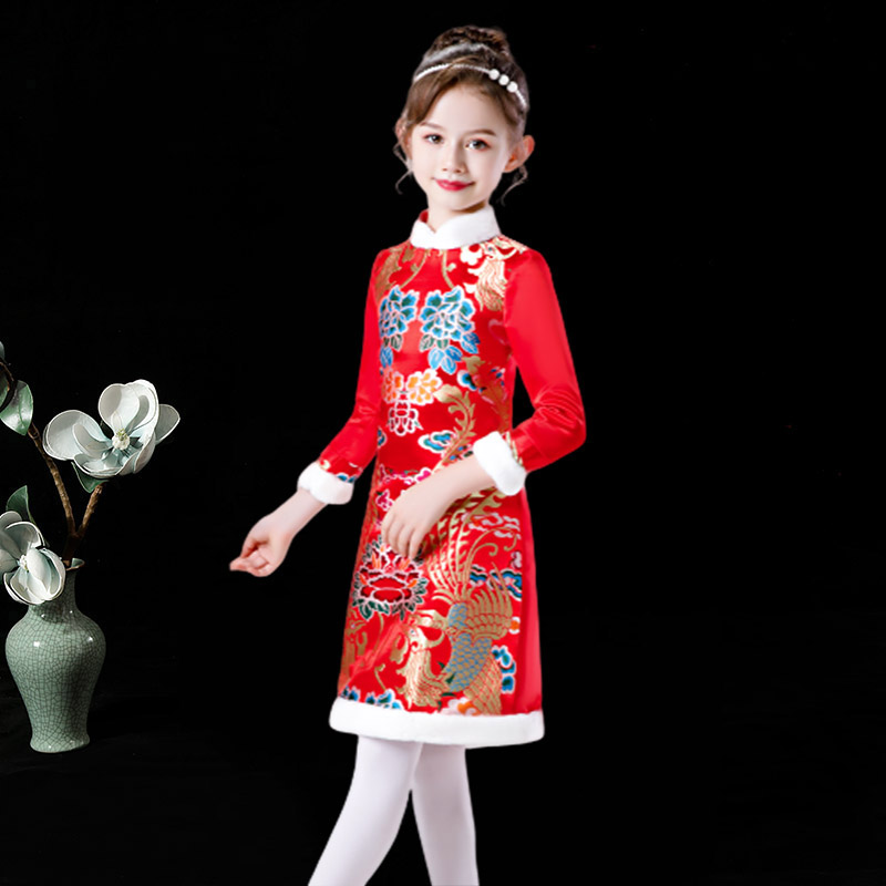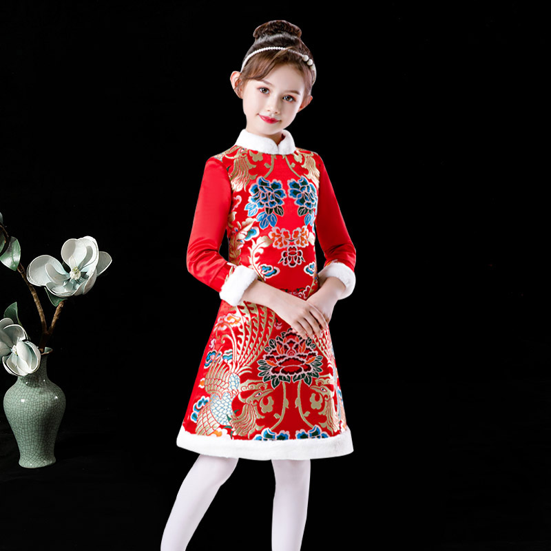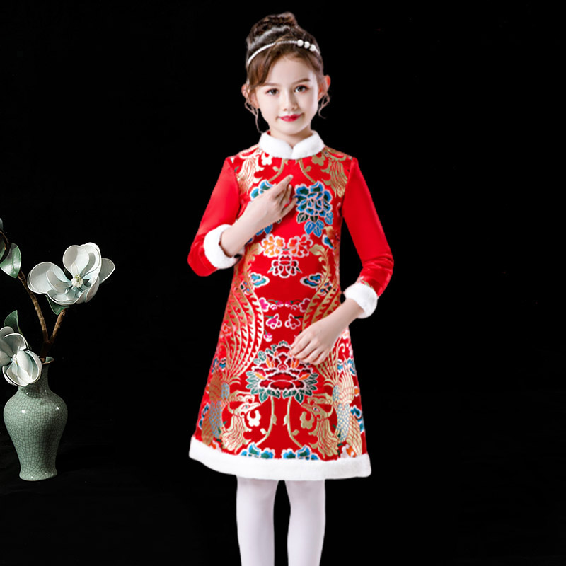 Girls' cheongsam red Girls' New Year's greetings magpie Girls' New Year's greetings pink