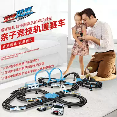 Double track car racing small train toy runway four-wheel drive children's puzzle boys remote control car 5 boys 3 years old