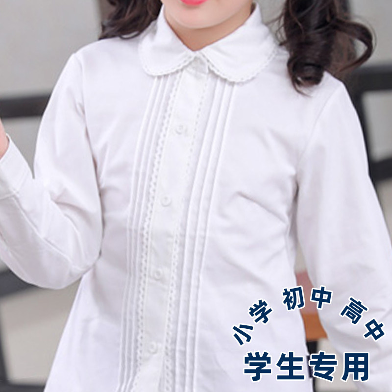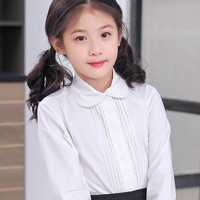 Children's girls white lace shirt cotton school uniform garden uniform long-sleeved spring and autumn style middle school and primary school performance dress dress
