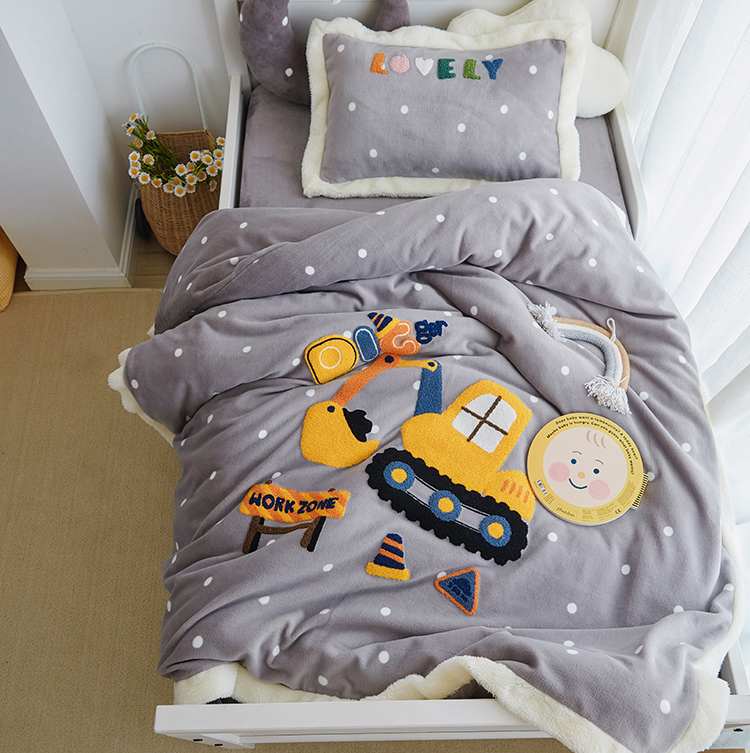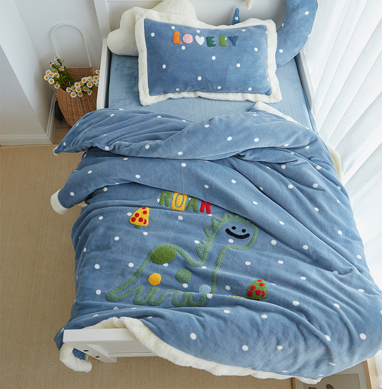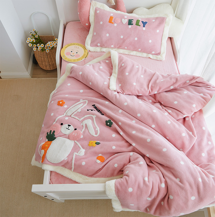 Foreign trade cartoon thickened warm embroidered milk velvet four-piece set boy girl rabbit wave dot autumn and winter bedding