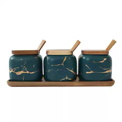 Nordic light luxury matte marble ceramic seasoning jar Seasoning bottle Kitchen accessories seasoning sub-packaging jar set