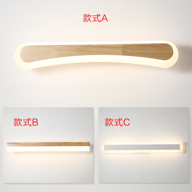 Nordic simple modern bed head wall lamp Log LED mirror head lamp Long cosmetic table mirror cabinet light Bathroom warm