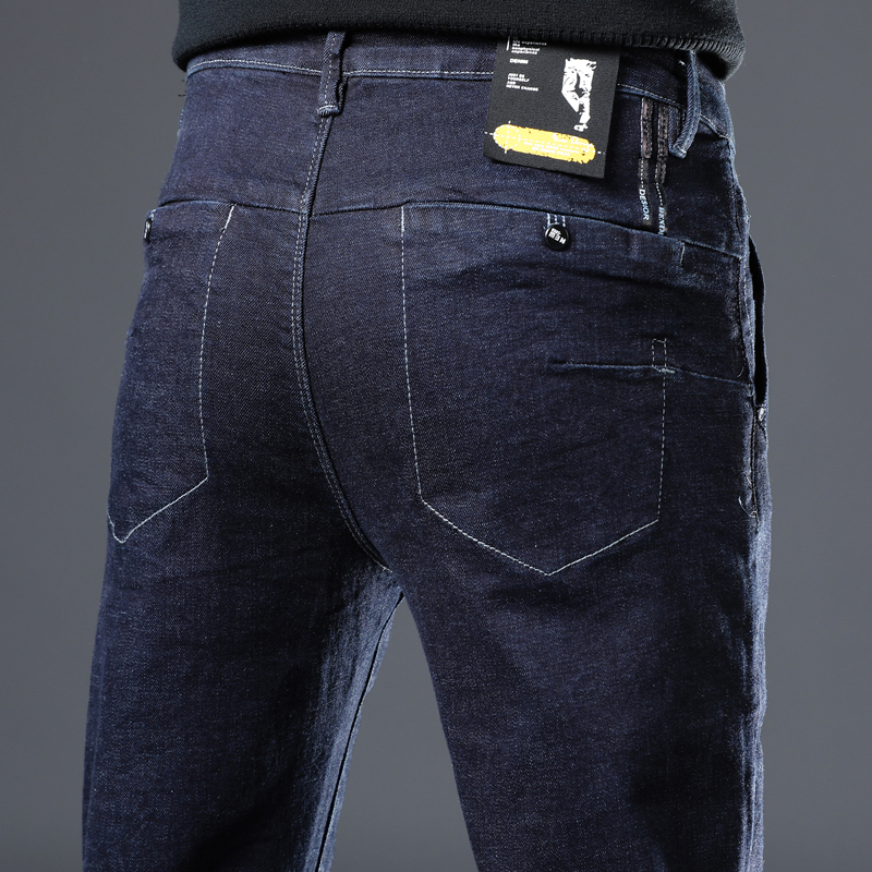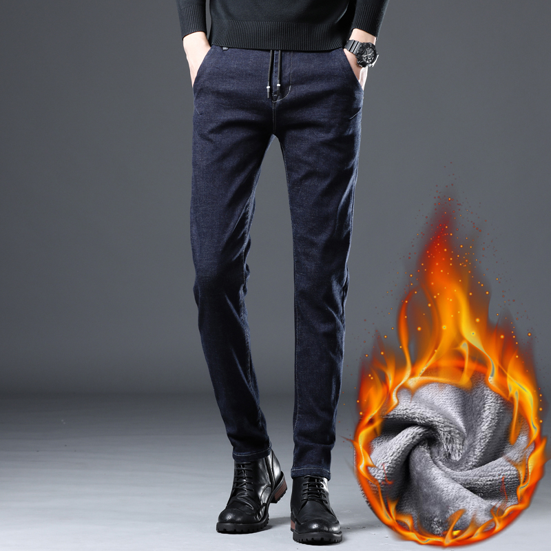 Hong Kong winter blue jeans men's velvet slim cigarette pipe pants Korean version of the trend men's pants Trend brand wild pants