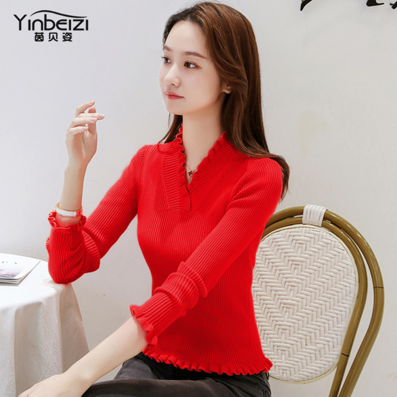 Long-sleeved base sweater top women's autumn and winter 2020 new style with Foreign style small short sweater worn outside
