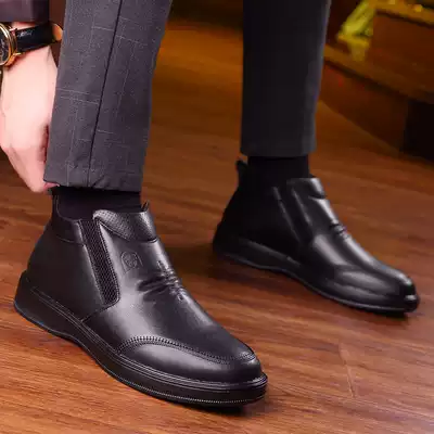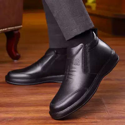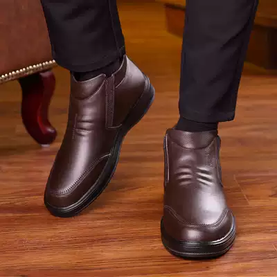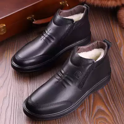 Big cotton shoes men's winter plus velvet thickened leather wool men's leather boots northeast non-slip warm dad cotton shoes