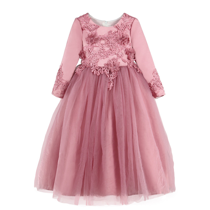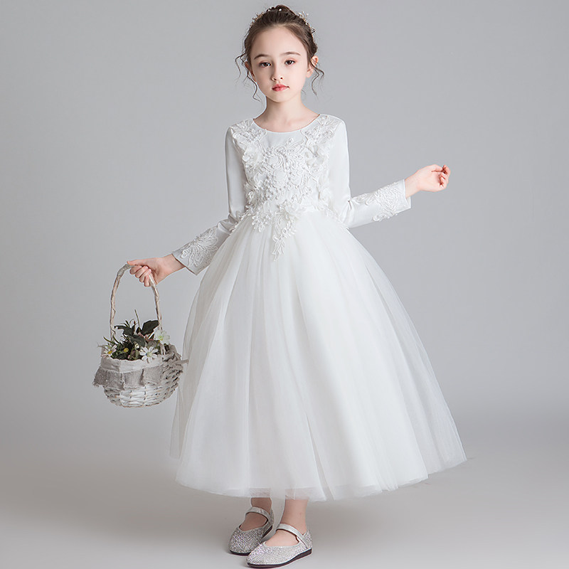 Flower Child dress Spring and Autumn Girl Dress Long sleeve noble wedding dress Princess Yangqi Piano Children's Performance Clothes