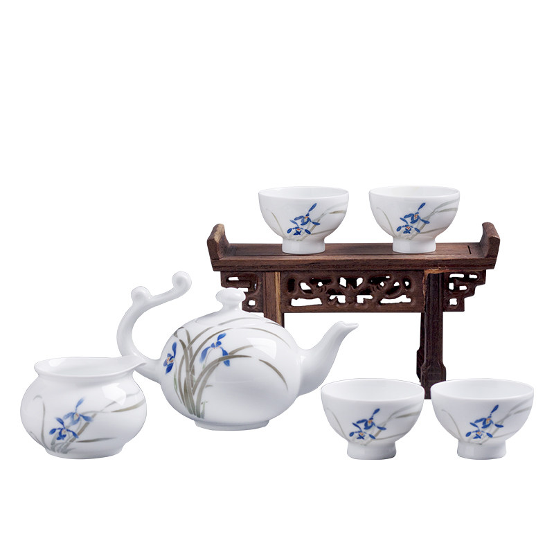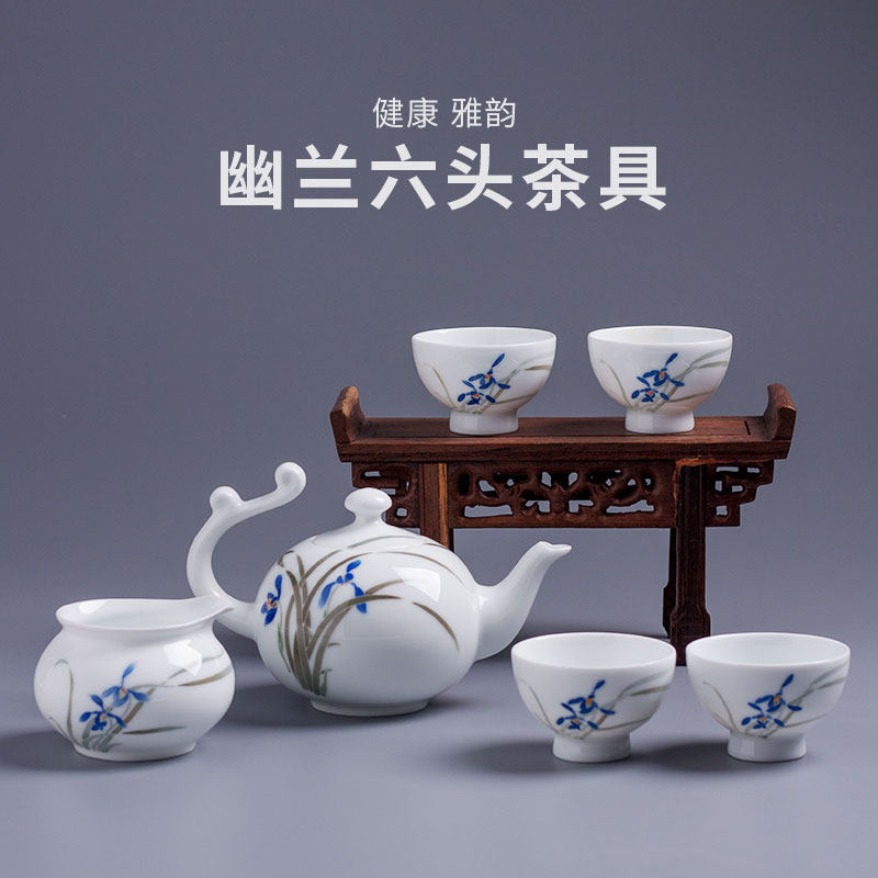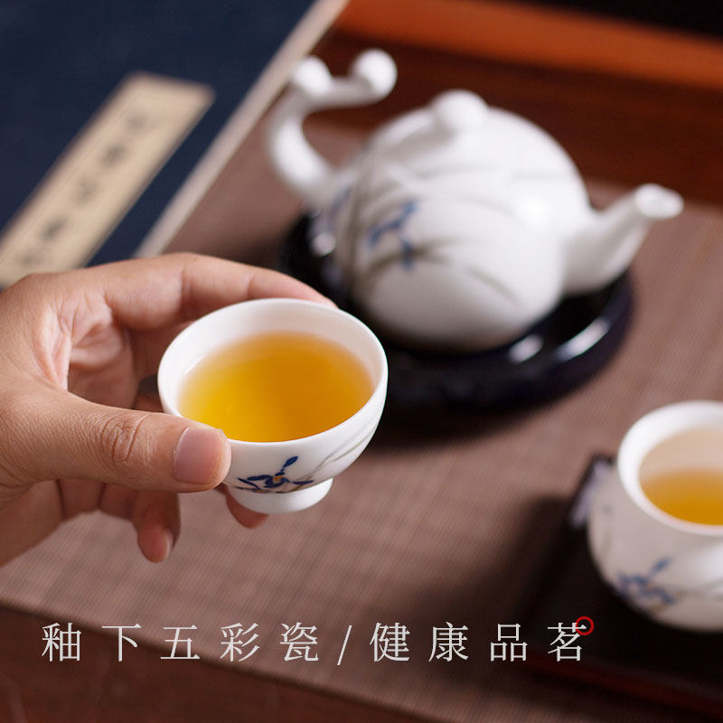 Ling-ling Porcelain Hand-painted Glazed Down Color Tea Set Group Home Whole Set Tea Tea Teapot Fair Cup Tea Cup Kongfu Tea Furniture