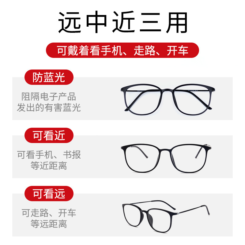 (Turn Grey Anti-Blue Light Look Afar) Please leave a message frame color degree (far and near three use anti-blue light) sand black frame 100 degrees (recommended for under 50 years) (near-and-near three-use anti-blue light) sand
