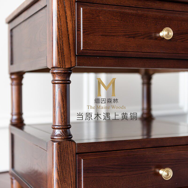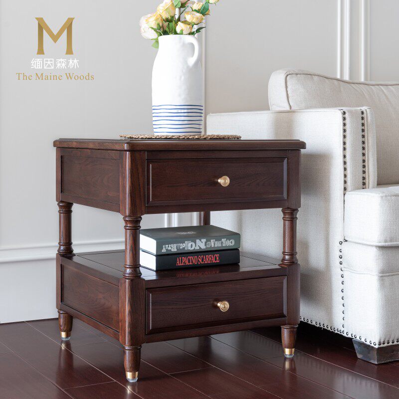 Light extravagant sofa side cabinet side cabinet small tea table American solid wood Roman column edge a few corners a few things cabinet big Maine forest