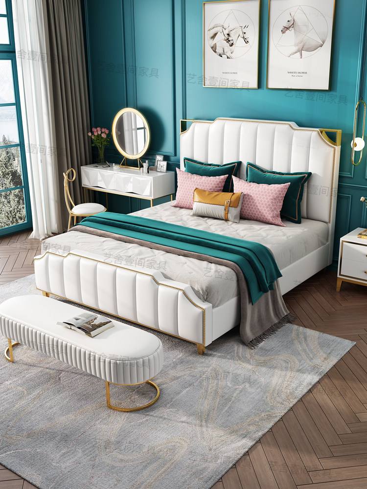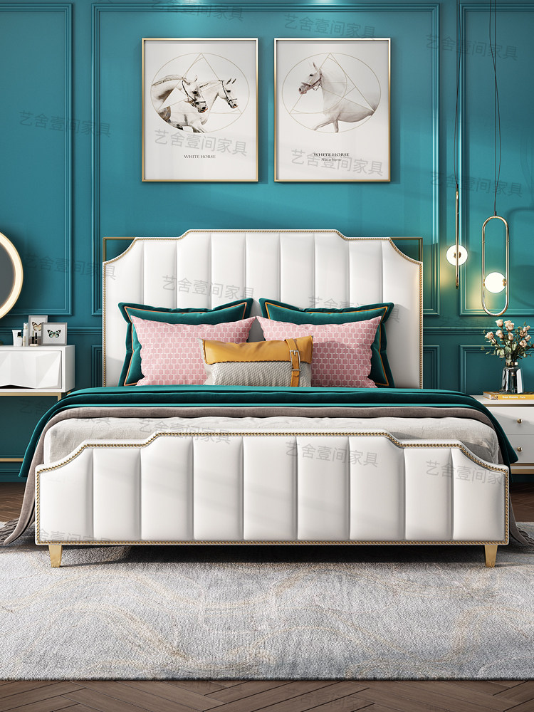 Post-modern light luxury double bed master bedroom leather 1 8 1 5 meter bed Nordic simple solid wood soft bag ins net red bed