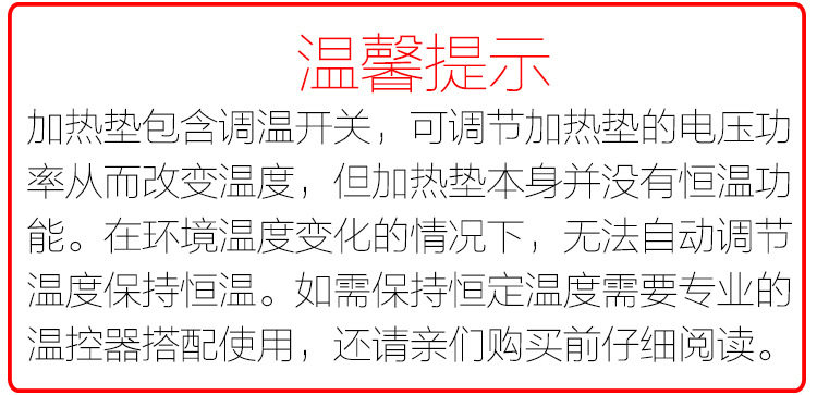 New temperature control 5W heating pad 14*15CM New temperature control 12W heating pad 15*28CM New temperature control 24W heating pad 28*28CM New temperature control 38W heating pad