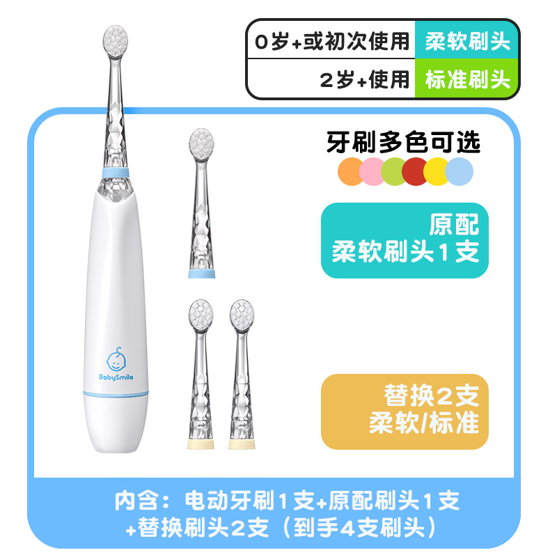 BabySmile Infant Baby Sonic Electric Toothbrush + Brush Head Soft Hair 0-2-4-6 years old deciduous teeth period