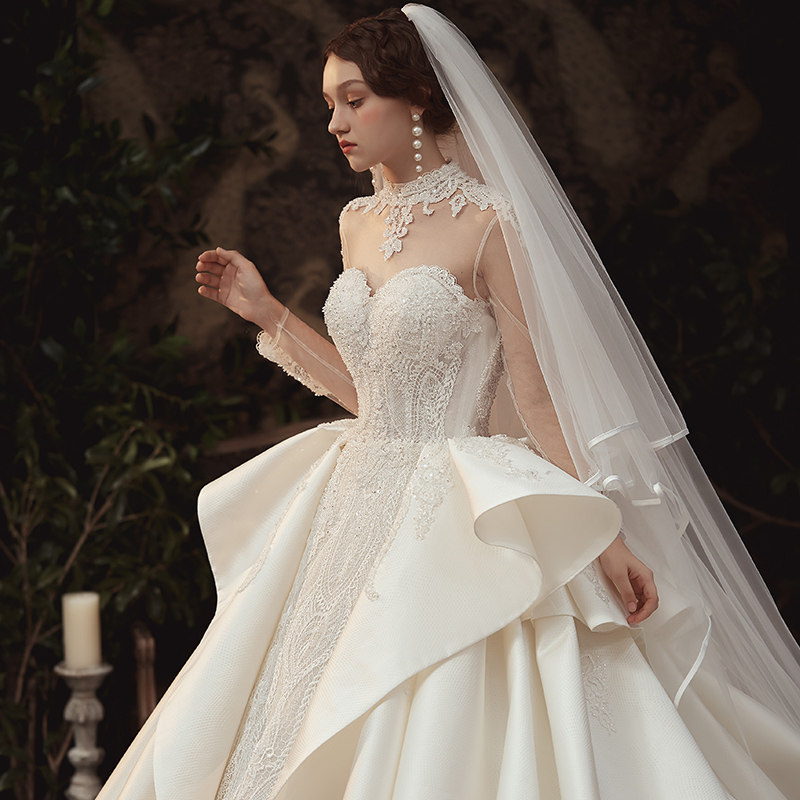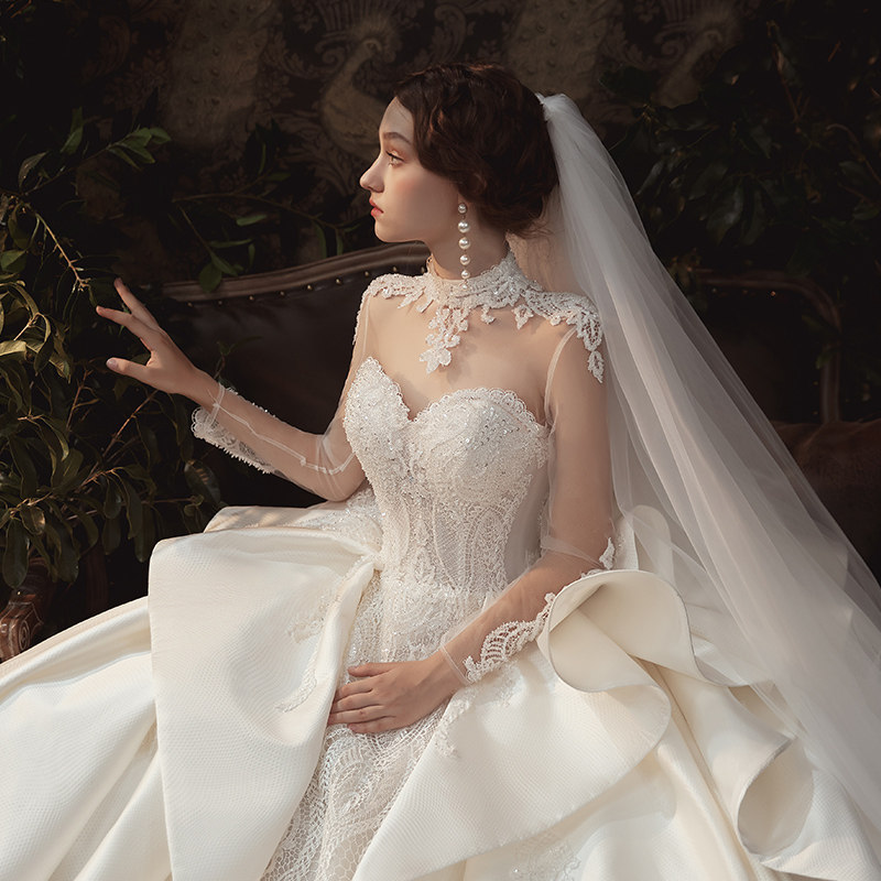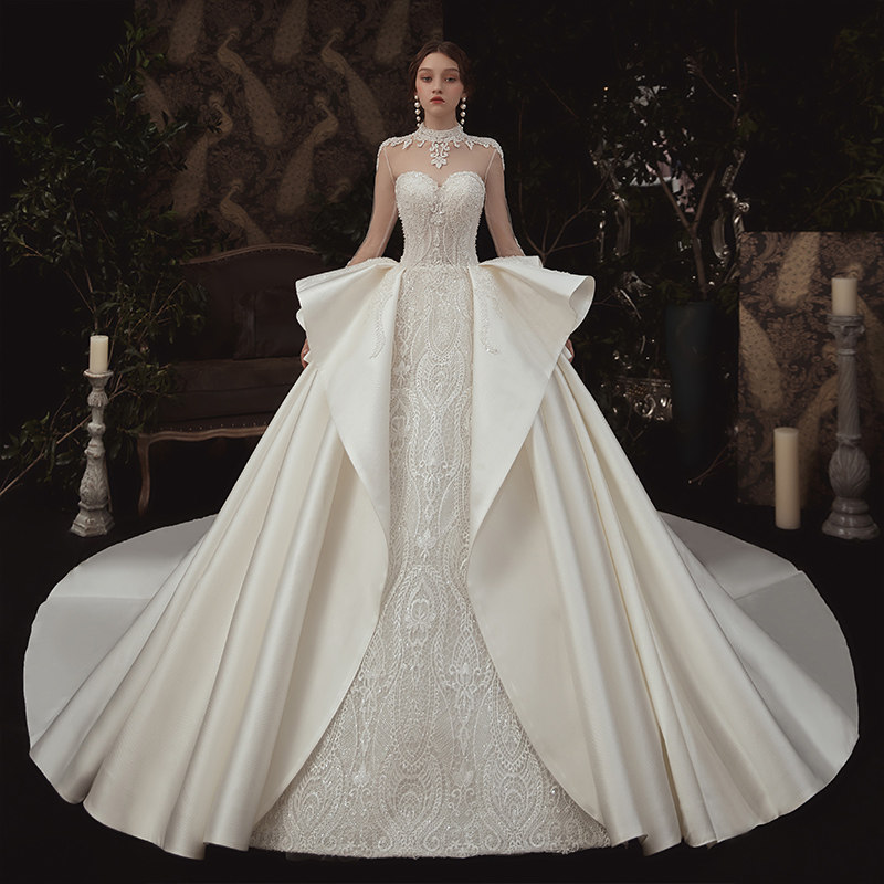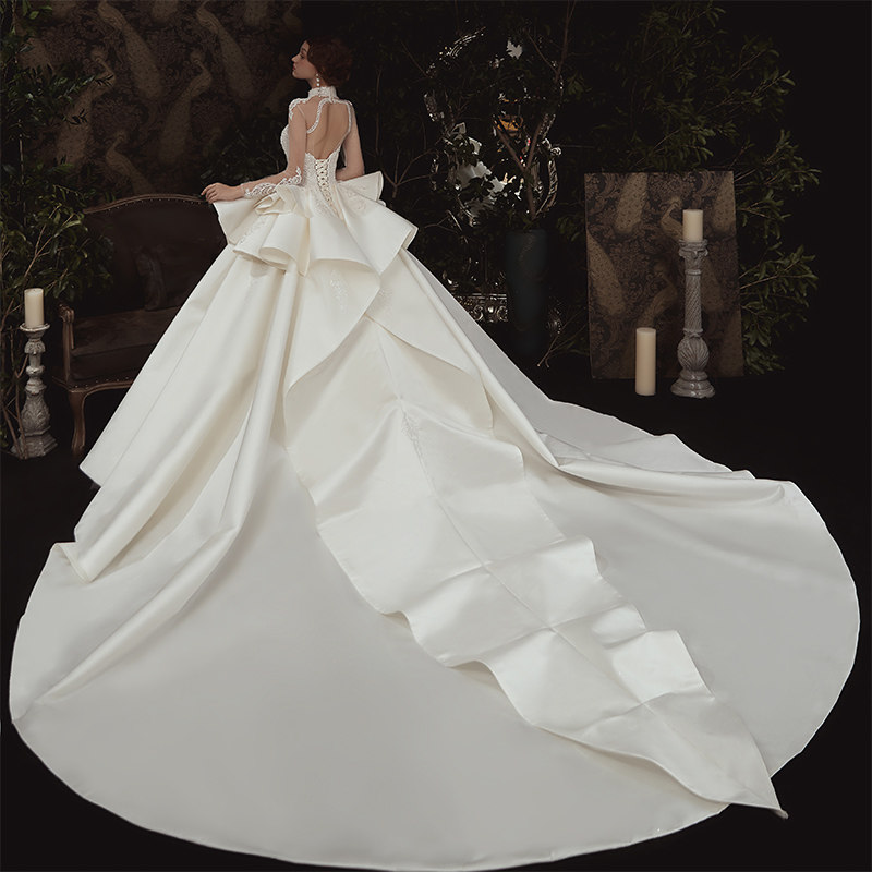 Reti Jo "Joupure" French style retro satin main wedding dress 2021 new bridal extravaganza tug trailing lady