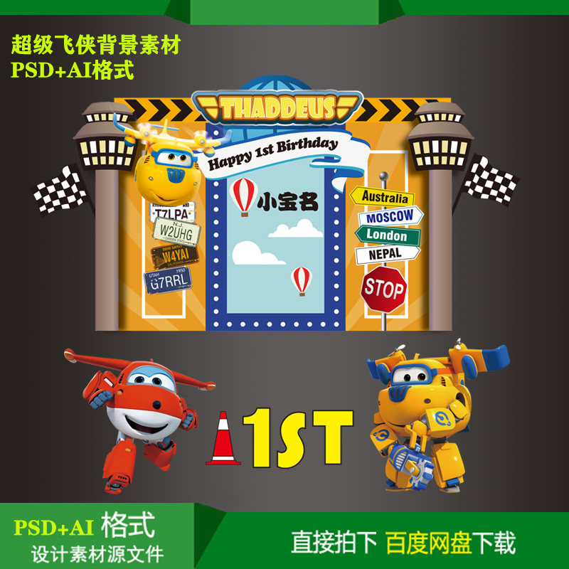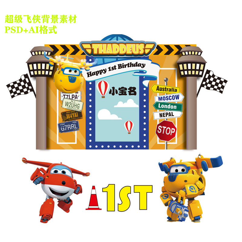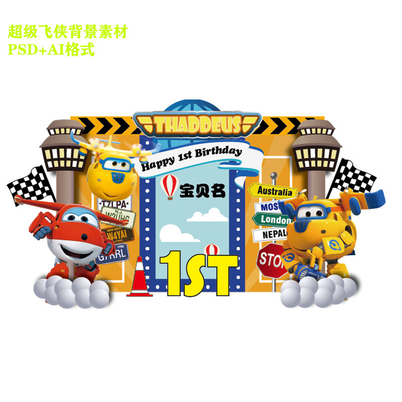 Super Flying Man Theme Baby Birthday Party Welcome Background KT Board Spray Painting Design Material psd ai Source File