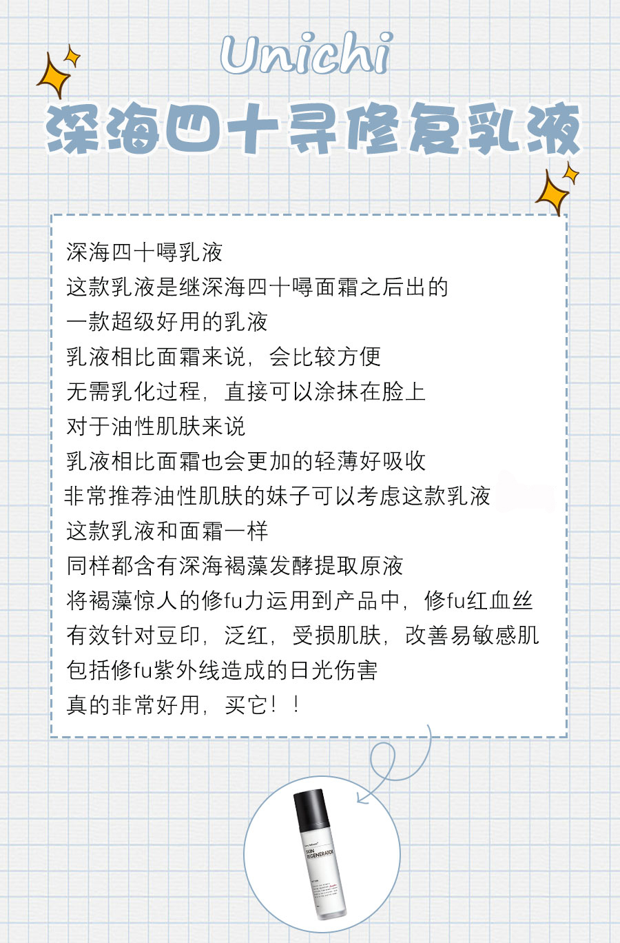 Australian unichi deep sea 40 fathoms amazing repair emulsion sunburn and moisturizing and moisturizing anti-UV