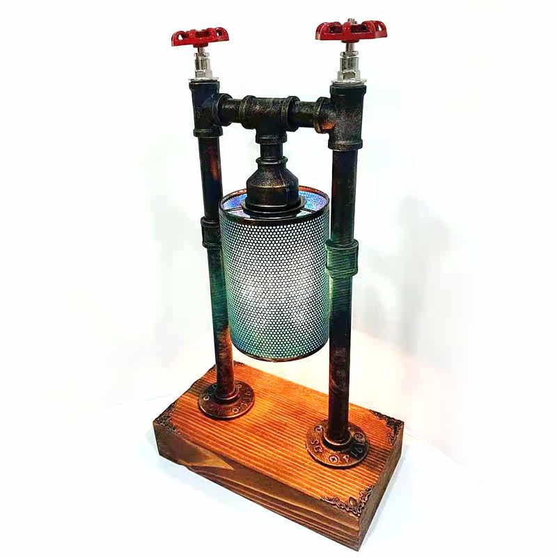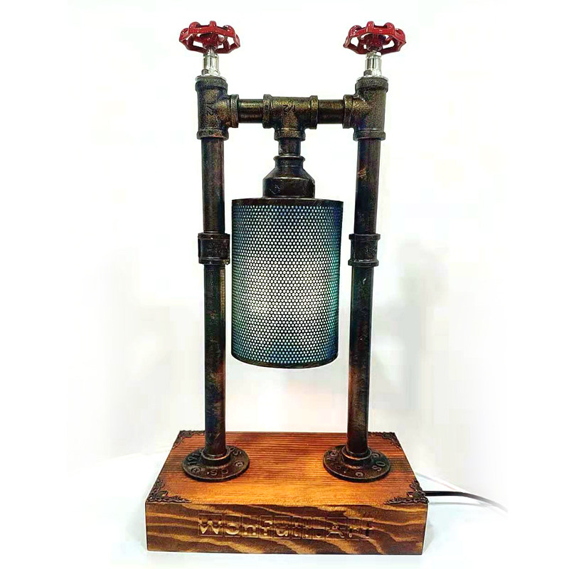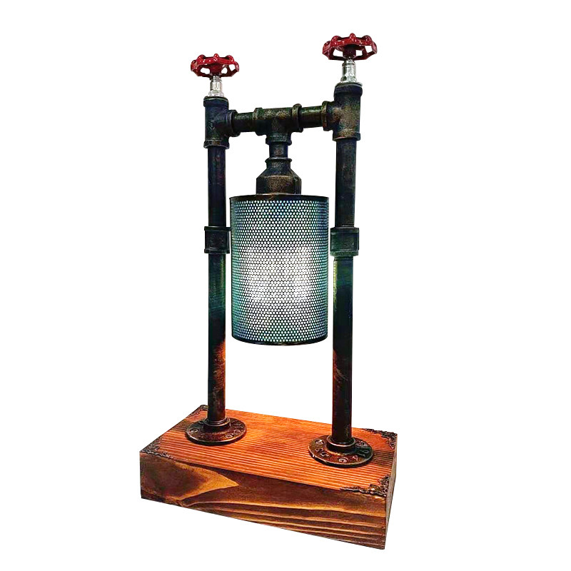 Creative solid wood American decorative lamp study bedroom bedside lamp metal water pipe valve industrial wind retro nostalgia