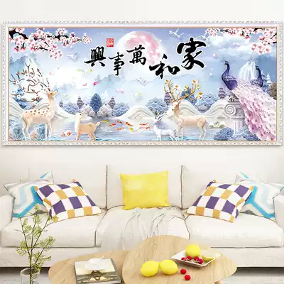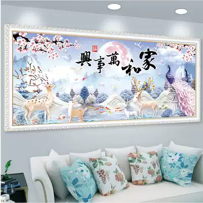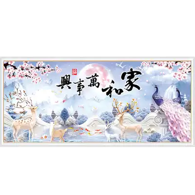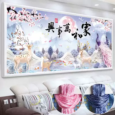 Handmade cross stitch 2021 new living room house and all things Xing elk scenery Peacock household own thread embroidery