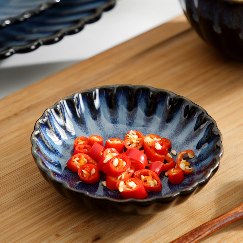 Multi-beautiful creative kiln change taste dish hotel hot pot household ceramic dip vinegar dish snack dish Japanese style