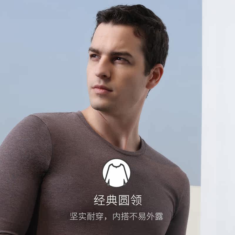 Red Nicole Seaweed Fiber Underwear Creeps Slim for men's autumn clothes sanitary pants suit round collar bottom fever clothes Youth