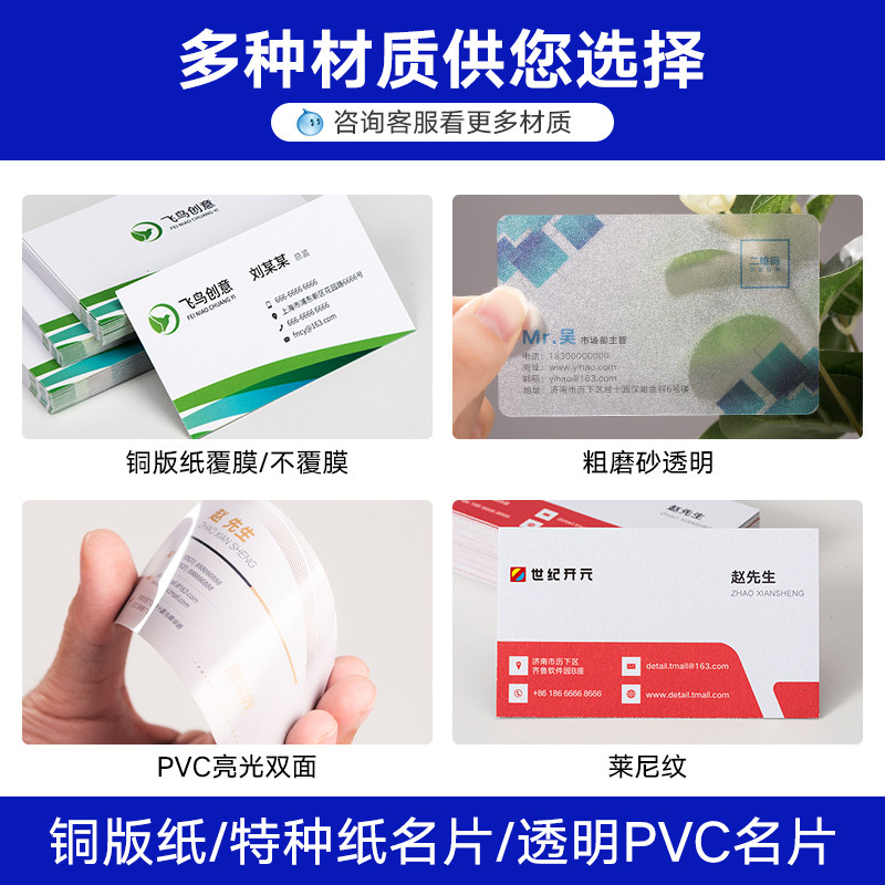 Business card printing custom-made free design printing High-end private custom special paper waterproof PVC business card card custom advertising small card double-sided business printing two-dimensional code Ming film voucher