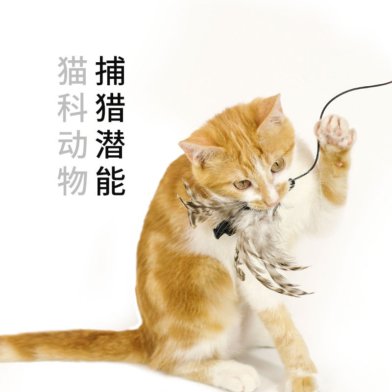 Meowcard elastic rope teasing cat with hand feather long pole steel wire cat toy supplies young cat fishing