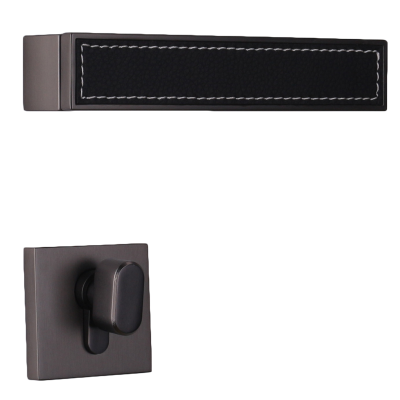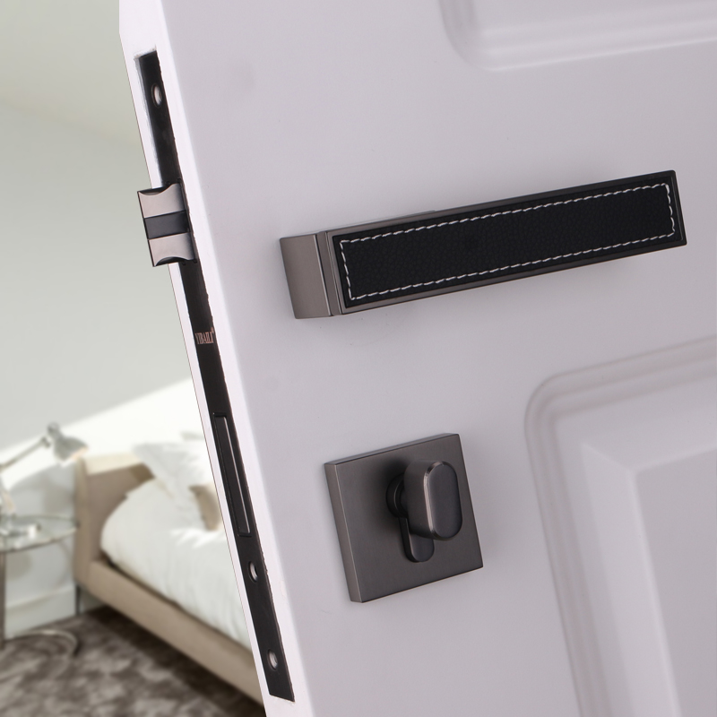 Taiwan Yithyme Nordic genuine leather door lock Indoor bedroom house door light extravagant silent solid wood door handle minimalist black