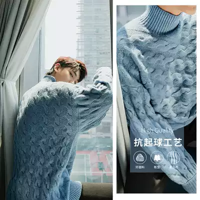 Sicilian Men's Youth Men's loose spring and autumn with a bottom twist turtleneck sweater men's Korean trend