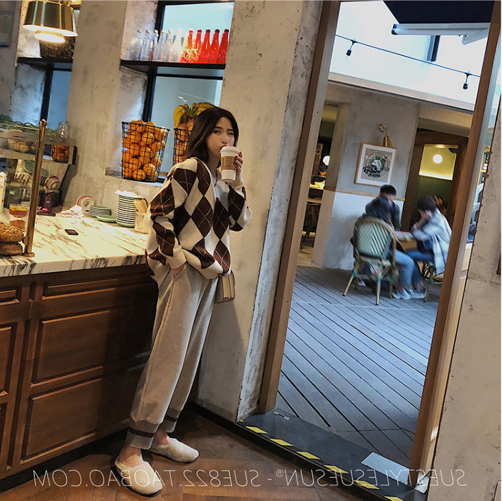 Coffee sweater Oatmeal pants Picture color suit (Premium version)Picture color velvet suit (Premium version)Polka dot sweater beige pants Polka dot sweater beige pants (velvet version)