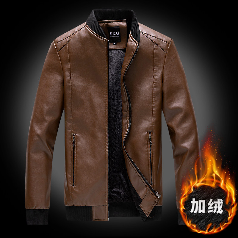 Men's leather clothes Motorcycle clothes jacket 2019 winter velvet thickened slim Korean version of the trend handsome leather jacket men