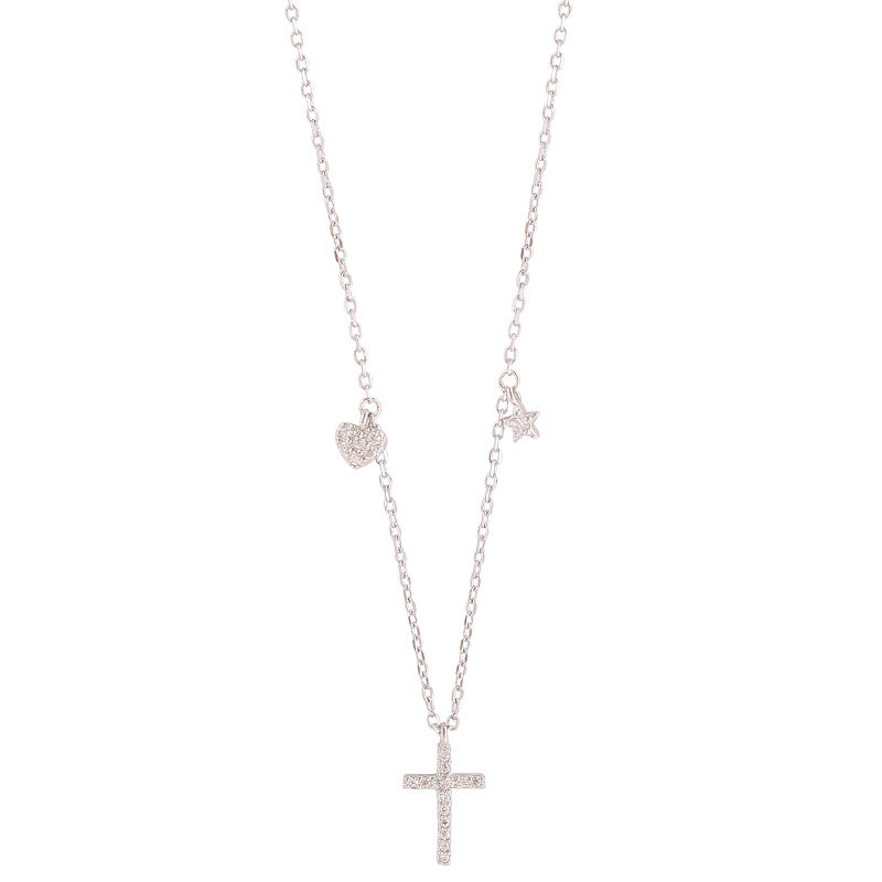 Cross silver necklace female ins simple love clavicle chain star all-match temperament net red niche design