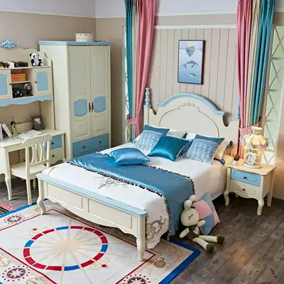 Blue solid wood bed Pink solid wood bed Gold solid wood bed Blue solid wood bed Head cabinet*1 Blue solid wood bed head cabinet*2 Blue bed head cabinet*2 22cm spring bed mat Blue 2 door clothes