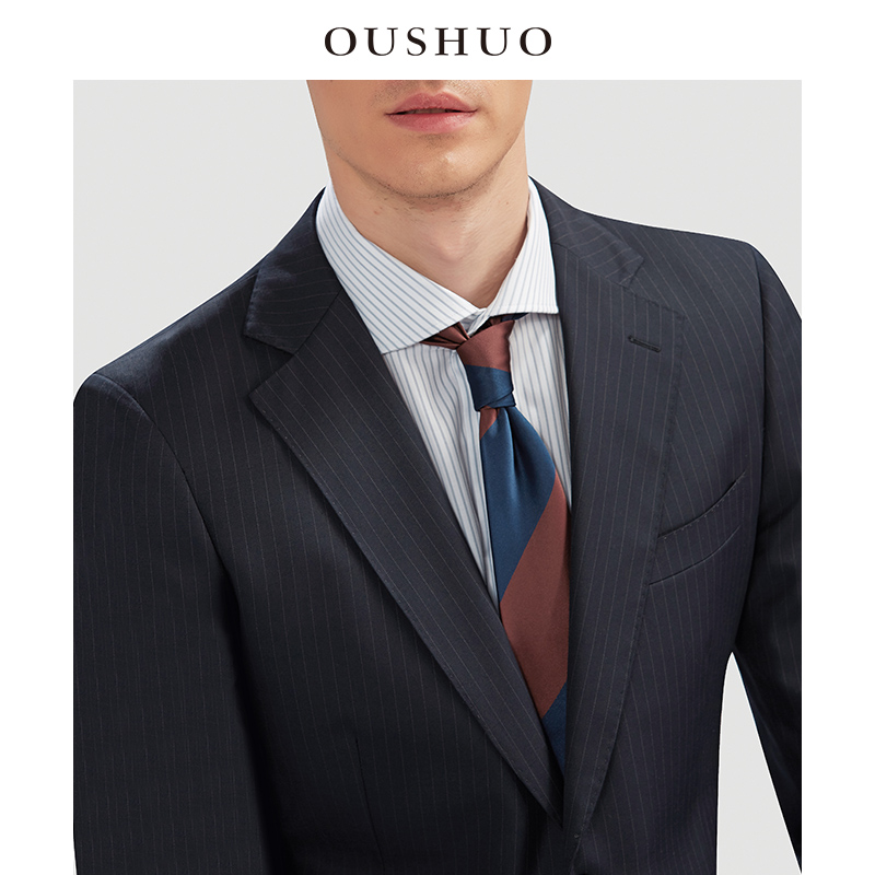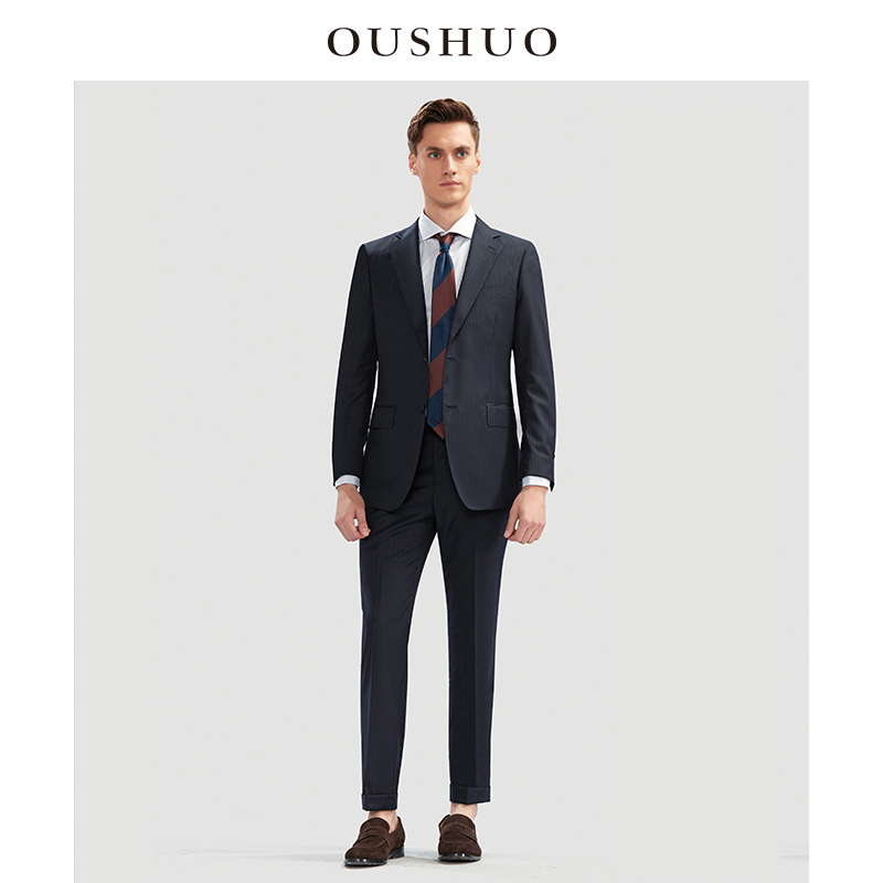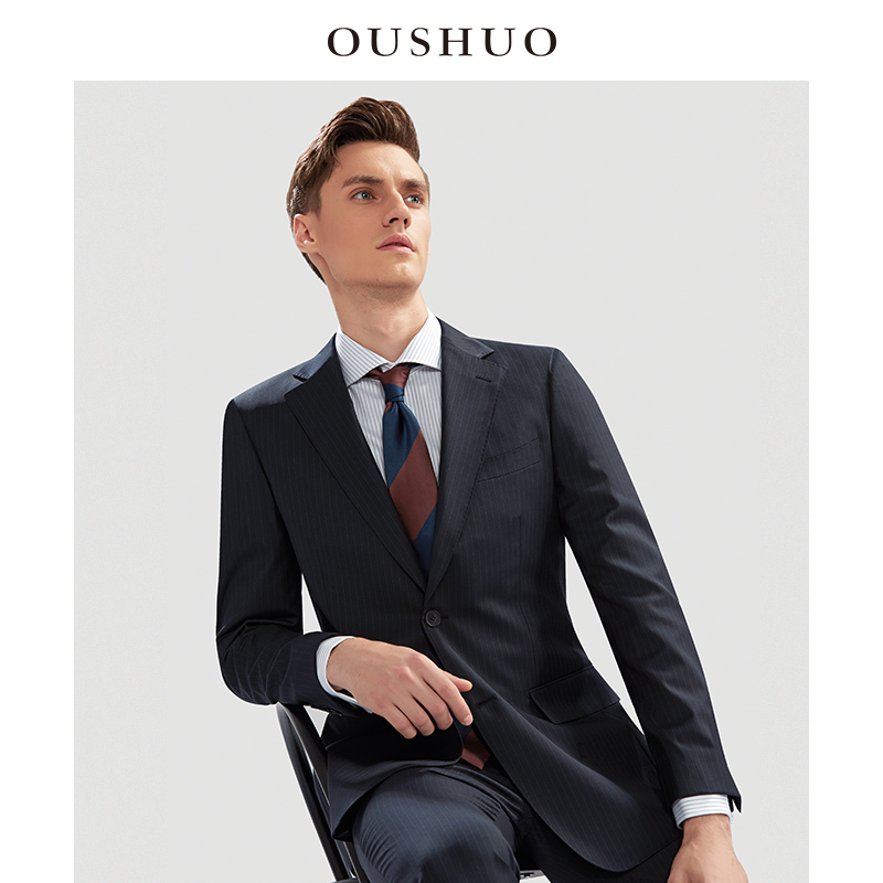 Ou said spring business casual striped suit suit men's Korean slim wool formal suit men navy blue